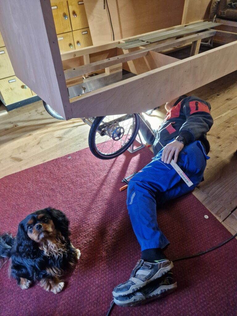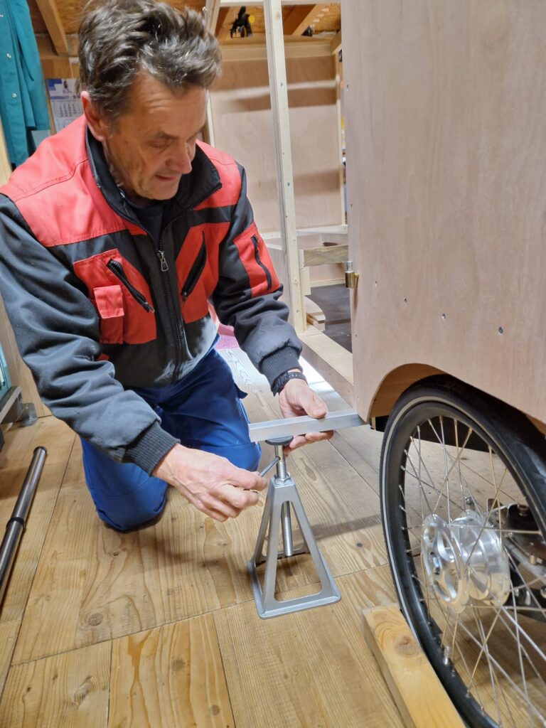 Aber: wir sind zu dritt – der Wohnwagen wird deutlich länger, im Stand breiter und insgesamt schwerer! Es muss für die meisten Dinge deshalb eine Sonderlösung her. Zum Glück hat Andreas bisher noch für alle Probleme die passenden Lösungen gefunden. Inwieweit sie sich bewähren, werden die ersten Testfahrten zeigen müssen. Dass wir hier und da improvisieren müssen, war bei unseren bisherigen Radreisen auch immer so. Wir mussten aber noch nie eine Reise abbrechen uns sind immer wieder zu Hause beim „rode Hiesl“ angekommen. Wir sind sehr zuversichtlich, dass das so bleibt.