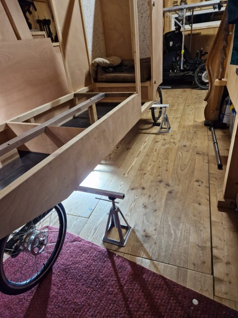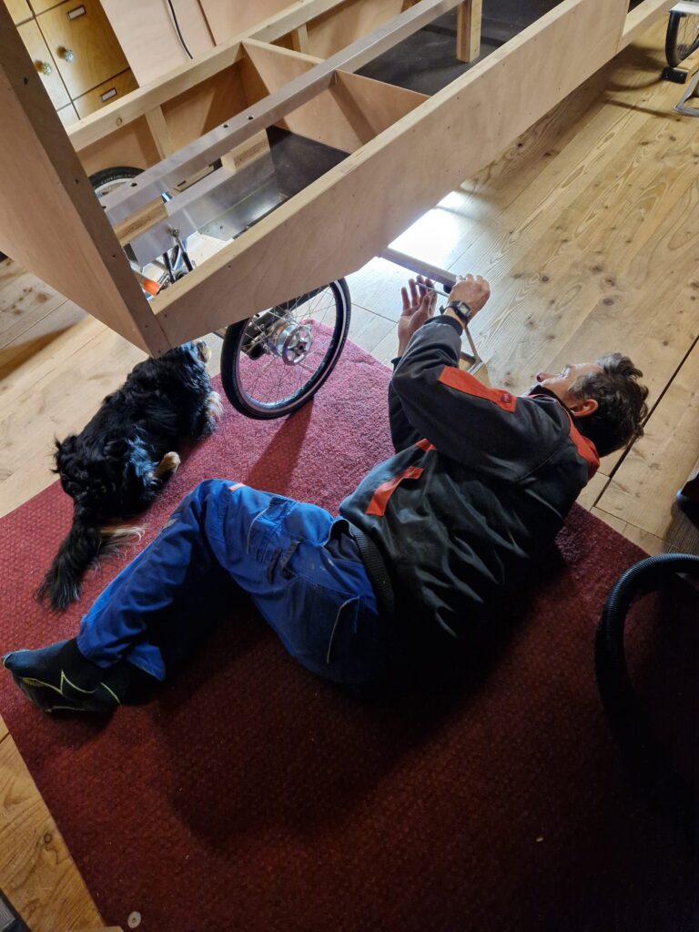 Andreas hat eine ganze Weile überlegt, wie er das lösen soll. Einige Ideen hat er ziemlich schnell wieder verworfen, andere wurden weiter verfolgt. Er holte sich auch manchmal Anregungen bei Youtubern, die bereits Fahrradwohnwagen gebaut haben.