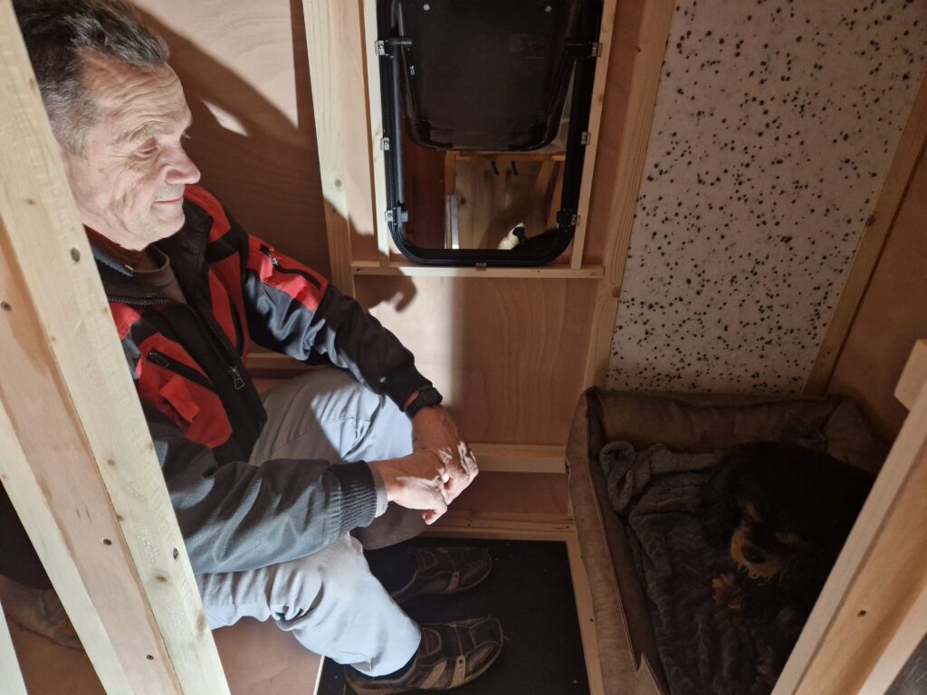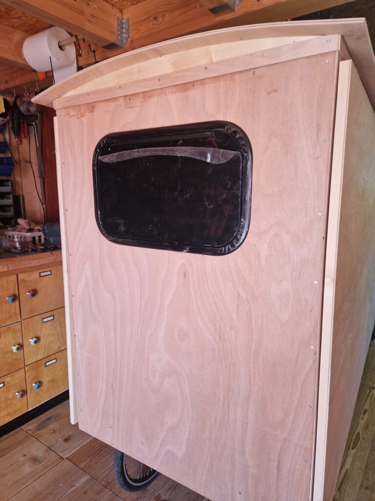 Wir haben jetzt am hinteren Ende des Wagens sowie gegenüber der Tür Fenster, die wir öffnen können. Gegebenenfalls könnten wir noch hier und da Lüftungsgitter einbauen, aber das machen wir erst, wenn wir es nach ausgiebigen Test-Übernachtungen für notwendig erachten.